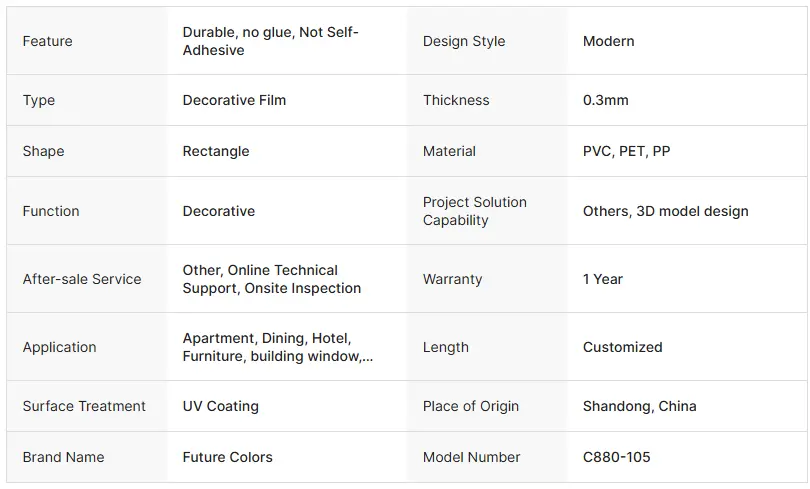 1.DERCECE: عصري قوي رنګ ټیسټ فلم د جوړښت شوی ظاهري ب appearance ه او قوي استقامت لري. دا کولی شي مختلف آرامه سټایلونو ته تطابق لکه عصري، لږترلږه ډیسټال، او نوډیک سټایلونه تنظیم کړي. او دا په ځانګړي ډول د کوچني ځایونو او پخلنځی لپاره مناسب دی. د اضافي نمونو له مداخلې پرته، جامد رنګ هیکیسټ فلم کولی شي په ښکاره ډول "ځای پراخه کړي". سربیره پردې، د مختلف سونډ رنګونو ترکیب کولی شي د ضمیمې احساس رامینځته کړي (e.G.، د سپینې کوک کابینې پینلونه